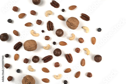 © Olga Shelukhova, Obraz premium Different nuts on a white background