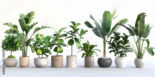 © Lin_Studio, Obraz premium Different Plants in Pots on a White Background