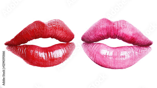 Obraz premium Different shades of lipstick on perfectly shaped lips in a vibrant display of...