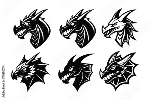 Obraz premium 6 different styles of dragon head mascot logo silhouette.eps