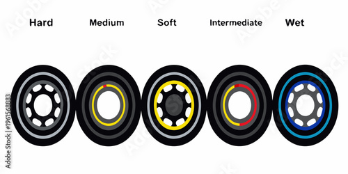 © Usa, Obraz premium Different tire compounds illustrated with varying color coded tread patterns