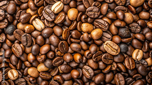 Fototapeta premium Different types of coffee beans spread out, highlighting their colors and...