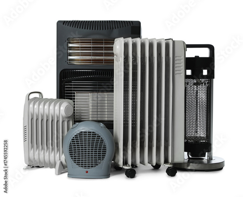 © New Africa, Fototapeta premium Different types of electric heaters isolated on white