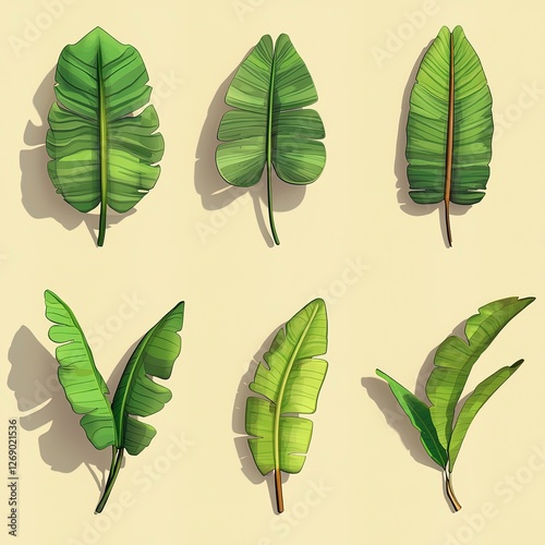 Fototapeta premium Different types of green tropical leaves arranged in a pattern