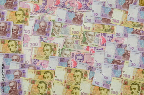 © RomanR, Naklejka premium different ukrainian banknotes background close-up