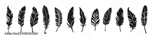 © Haji, Obraz premium Different vector bird feather silhouettes. Plume collection.