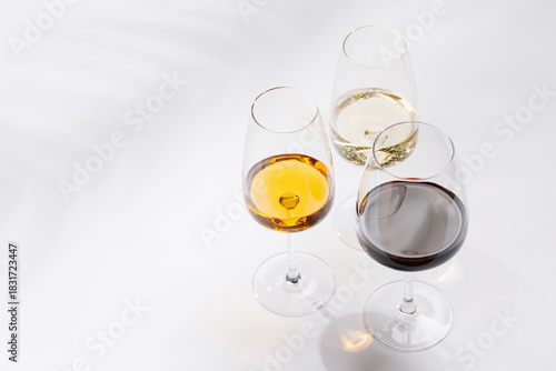 © evgeeenius, Fototapeta premium Different wine glasses on white background