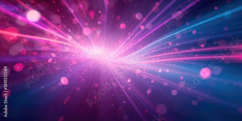 © TheWaterMeloonProjec, Naklejka premium Diffuse neon-colored abstract lights with bokeh effects in pink and blue hues, used as a trendy background for digital layouts