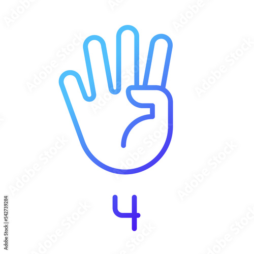 © IMG visuals icons, Fototapeta premium Digit four sign in ASL pixel perfect gradient linear vector icon. Nonverbal communication performing. Modality. Thin line color symbol. Modern style pictogram. Vector isolated outline drawing