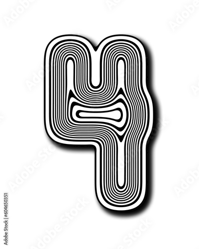 Fototapeta premium Digit four with design Lines in black and shadow on white background