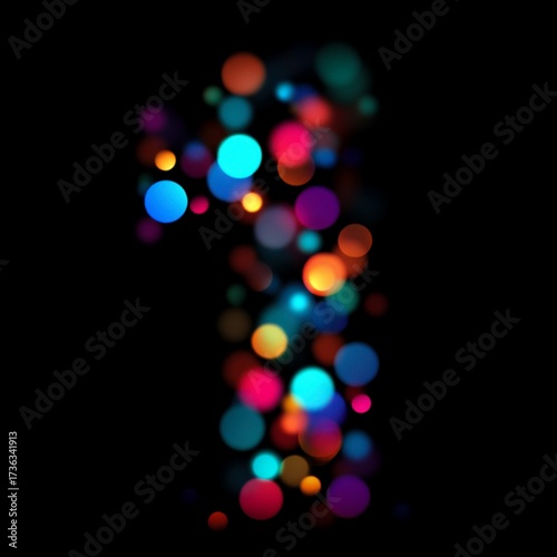 Naklejka premium Digit 1 Vibrant Colorful Holiday Bokeh Letter Overlays Collection with Bright Confetti and Glittering Lights for Festive Seasonal Designs and Celebrations