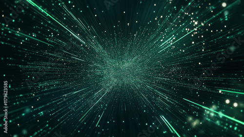 © Wasin Arsasoi, Naklejka premium Digital Abstract: A mesmerizing abstract background with a digital green glow. The background is full of lines of light emanating from the center. The image is perfect for presentations, websites.