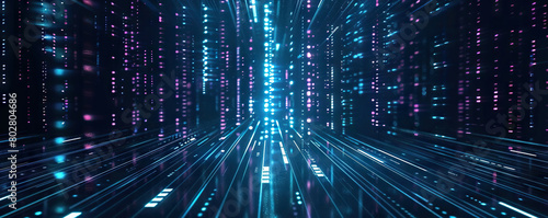 Fototapeta premium Digital abstract backdround for technological operations, neural networks, AI, data transmission and encryption, digital archives, audio and visual representations, scientific research. Copy space