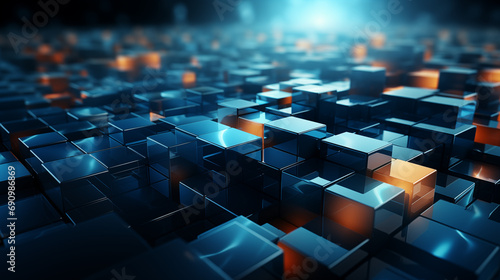 © Denis, Obraz premium Digital abstract background, background from cubes, waves from cubes, AI generate