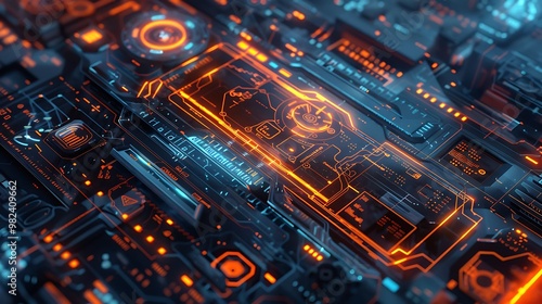 © MdAnontoIslam, Fototapeta premium Digital Abstract IT Futuristic Modern network,pattern ,circuit,global etc. Technology Bacground AI