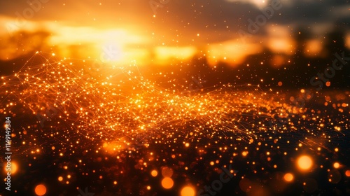 Naklejka premium Digital abstract network background with a wire mesh grid pattern, symbolizing data transfer and connected systems, perfect for modern technological, AI, and blockchain design concepts.