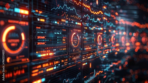 Obraz premium Digital analytics data visualization, financial schedule, monitor screen in...