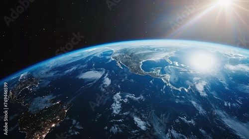 Fototapeta premium Digital and AI Technology screen on planet interface concept, AI generated for texts and ads