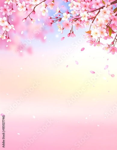© Belanita15, Fototapeta premium Digital art of blooming cherry blossoms, petals falling on soft pastel background