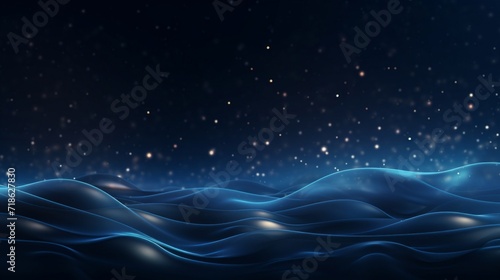 Fototapeta premium Digital art of serene blue waves under a tranquil starry night sky.