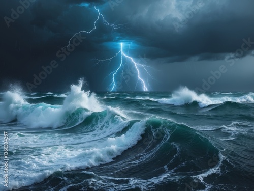 © Den Boro Day, Fototapeta premium Digital art piece that appears to be stormy Intense storm at sea.