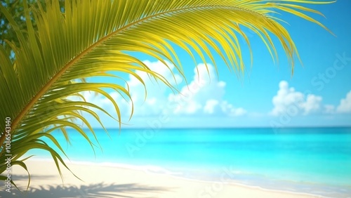 © He, Obraz premium Digital artwork beach scene palm frond yellow