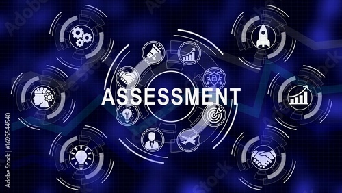 © AR Rahman, Fototapeta premium Digital assessment concept with symbolic icons representing business success and evaluation