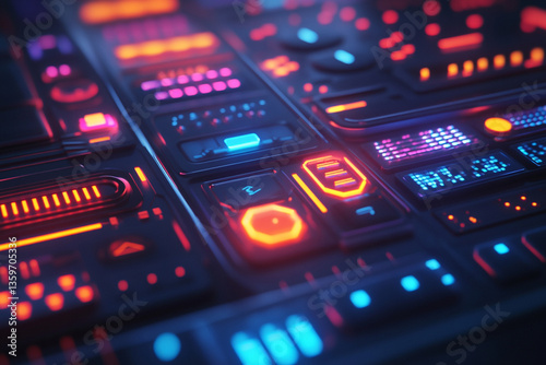 © Nova_Art, Obraz premium Digital audio mixing console with technology and sound elements