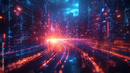 © shirophoto, Fototapeta premium Digital background show up the hologram of connecting nertwork growing node in the megacity