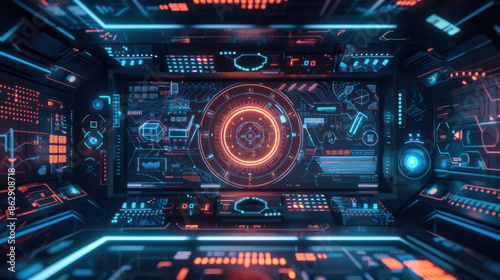 © NooPaew, Obraz premium Digital background with holographic interfaces and touchscreens