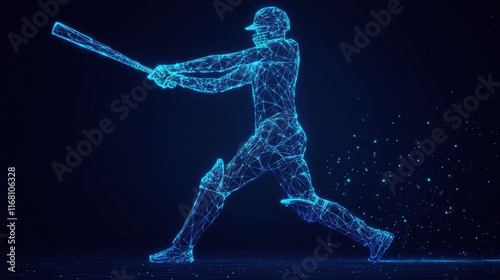 Fototapeta premium Digital Baseball Player Hitting Swing in Wireframe Style