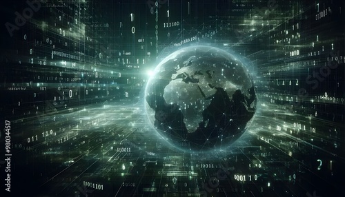© QasimAli, Obraz premium Digital binary code data streaming on a dark