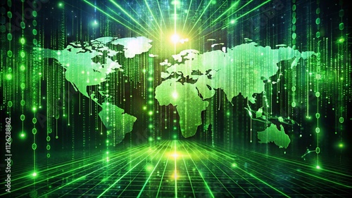 © chaowalit, Obraz premium Digital Binary Code Matrix - Aerial Tech Cyberspace