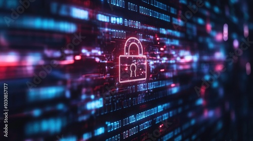 © hanisah, Obraz premium Digital binary data on microchip with glow circuit board background