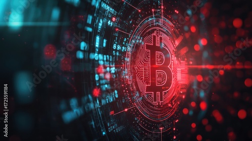 © Hardiman, Obraz premium Digital bitcoin symbol network
