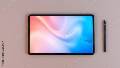 © edi, Fototapeta premium Digital blank tablet computer with a colorful abstract display on the screen