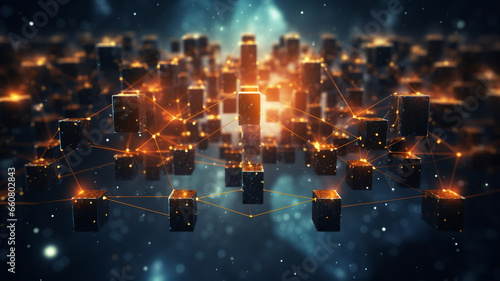 Obraz premium digital blockchain connection background, data global transform in the future...