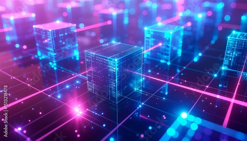 © Motion AI, Obraz premium Digital blocks connected with glowing lines representing blockchain network
