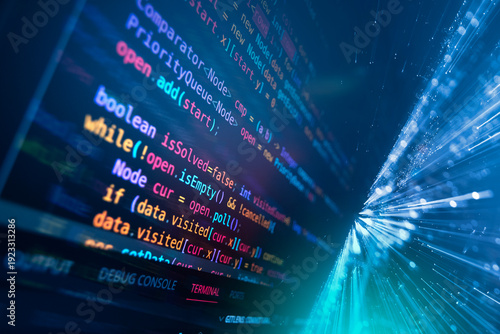 © noppadon, Obraz premium Digital blue binary code background representing a conceptual high-tech data display for global business communication and financial security in a modern network environment