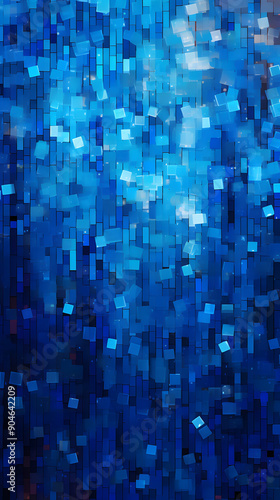 © yonshan, Fototapeta premium Digital blue glitter square mosaic abstract graphic poster background