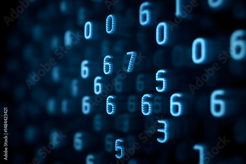 Obraz premium Digital blue numbers floating in a dark space, representing data, coding, or...