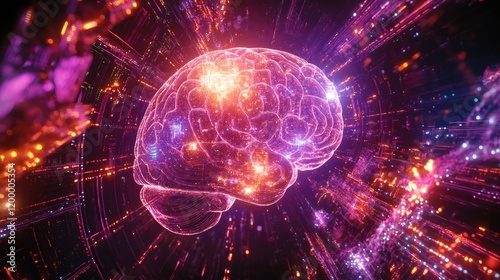Obraz premium Digital Brain Illuminated Within A Data Stream