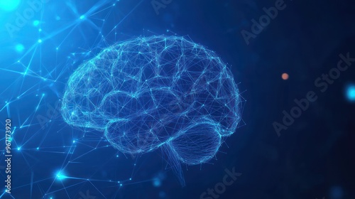 Obraz premium Digital brain technology concept, vector abstract low polygonal dot lines connected brain background.