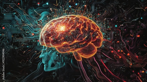 © Gendut, Fototapeta premium Digital Brain: The Interplay of Technology and Thought