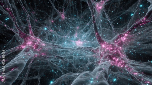 © rookielion, Fototapeta premium Digital Brain Visualization: AI consciousness emerging from interconnected data nodes in starfield