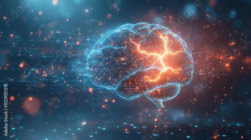 Fototapeta premium Digital Brain with Glowing Connections in Cosmic Space