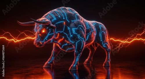 Fototapeta premium Digital bull with glowing circuits symbolizes power finance and futuristic...