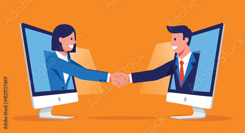 Obraz premium Digital Business Agreement and Partnership Across the World Reaching New...