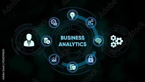 © M.G, Obraz premium Digital business analytics concept with icons representing data analysis and strategy