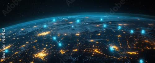 © Stock Avenue, Fototapeta premium Digital business ecosystem showcasing worldwide connections virtual currency and IoT on a wide banner layout